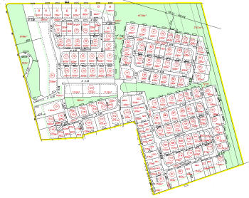 - Sonderung (Parzellierung) der über 150 Bauplätze sowie der Flächen für den öffentlichen Bedarf (Verkehrsflächen, Spielplätze und Grünanlagen, Regenrückhaltebecken, Bus-Wendeschleife)