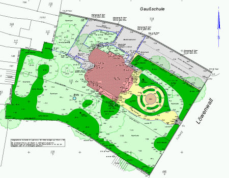 Topografische Geländeaufnahme zur Neuplanung der Gartenanlage der von der Stiftung Braunschweigischer Kulturbesitz genutzten "Gerloff'schen Villa" am Löwenwall in Braunschweig.